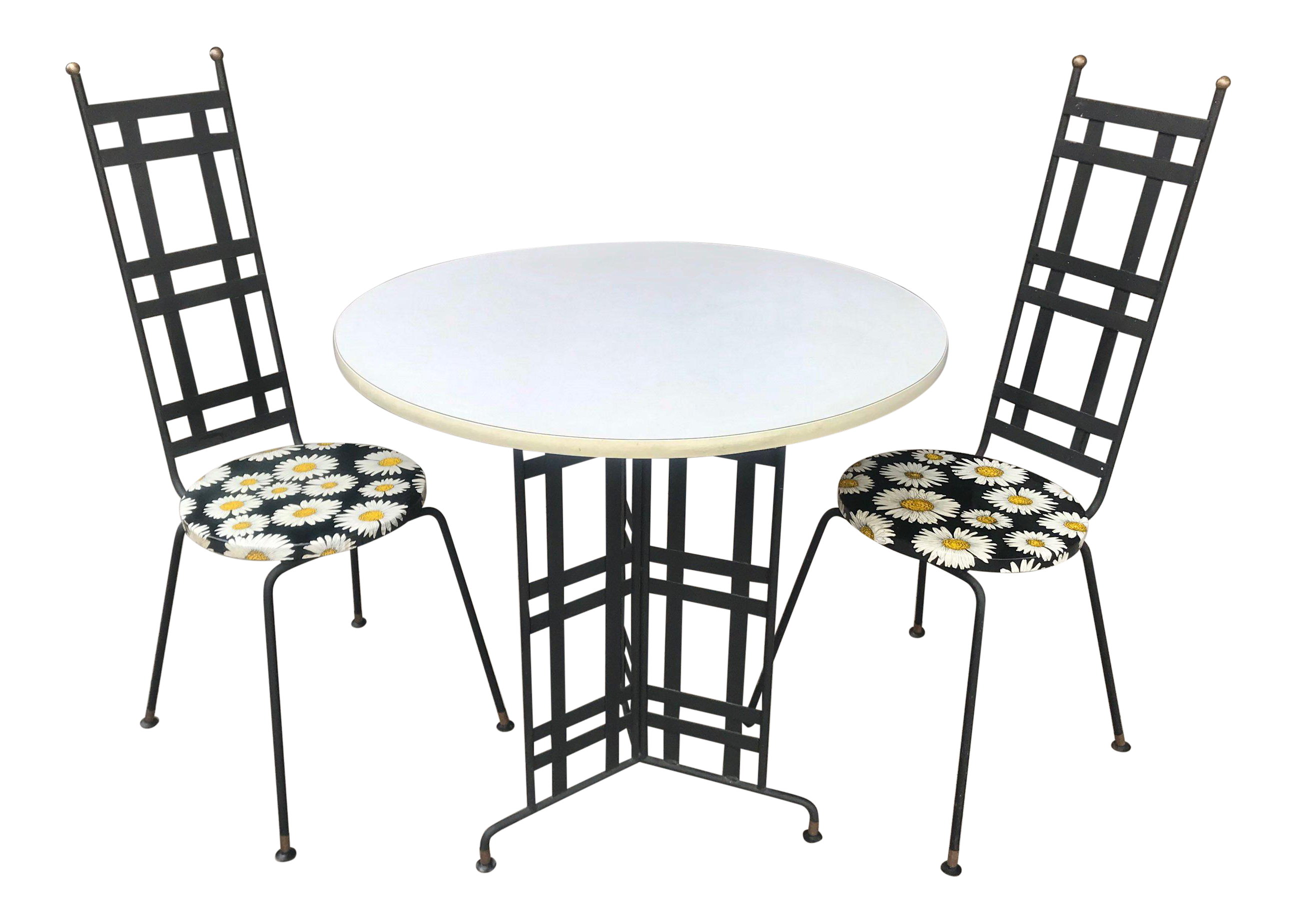 Midcentury Wrought Iron 3 Pieces Fresh Purple Bistro Set Set Of 3 Chairish from chairish-prod.freetls.fastly.net Solid wrought iron with a nice hard formica top. A collection that includes designs for both roomy decks and modest patios, this inspired range of dining furniture features stylish chairs and tables that weather the elements beautifully. Clean lines, compass feet, these chairs are perfect for a restaurant or bistro with vintage and trendy decor. Moremid century modern wrought iron bistro set attributed to arthur umanoff. Very graphic, yet light and unobtrusive. Discover bistro set at world market, and thousands more unique finds from around the world. Check out our mid century bistro selection for the very best in unique or custom, handmade pieces from our shops. Mid century 6 piece vintage bamboo patio bistro set and armchairs with original fabric.